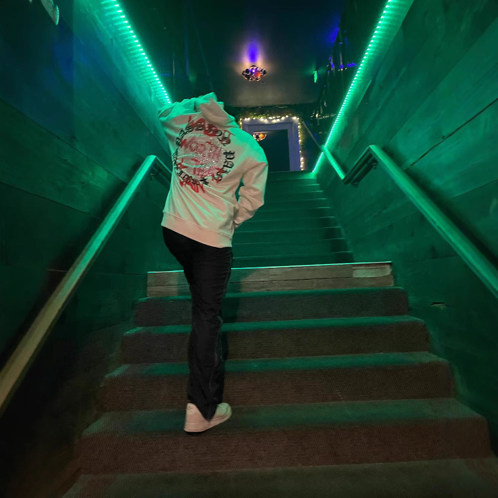 Printed Skull Hot Rhinestone Loose Hooded Sweatshirt